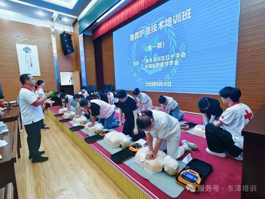 6月20日,天河护理学学会联合天河区红十字会,广州东泽安全培训中心在天河区卫健局开展红十字救护员培训,近70名护理骨干齐聚,共筑生命防线。