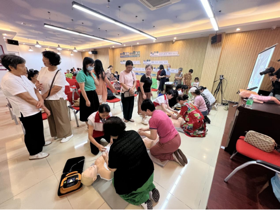 本次培训活动,讲师们就日常生活中常见的心绞痛、心肌梗死、糖尿病昏迷等突发疾病的急救措施和注意事项,用通俗易懂的语言为大家进行详细的讲解,并对心肺复苏操作流程和技巧进项现场操作演示。